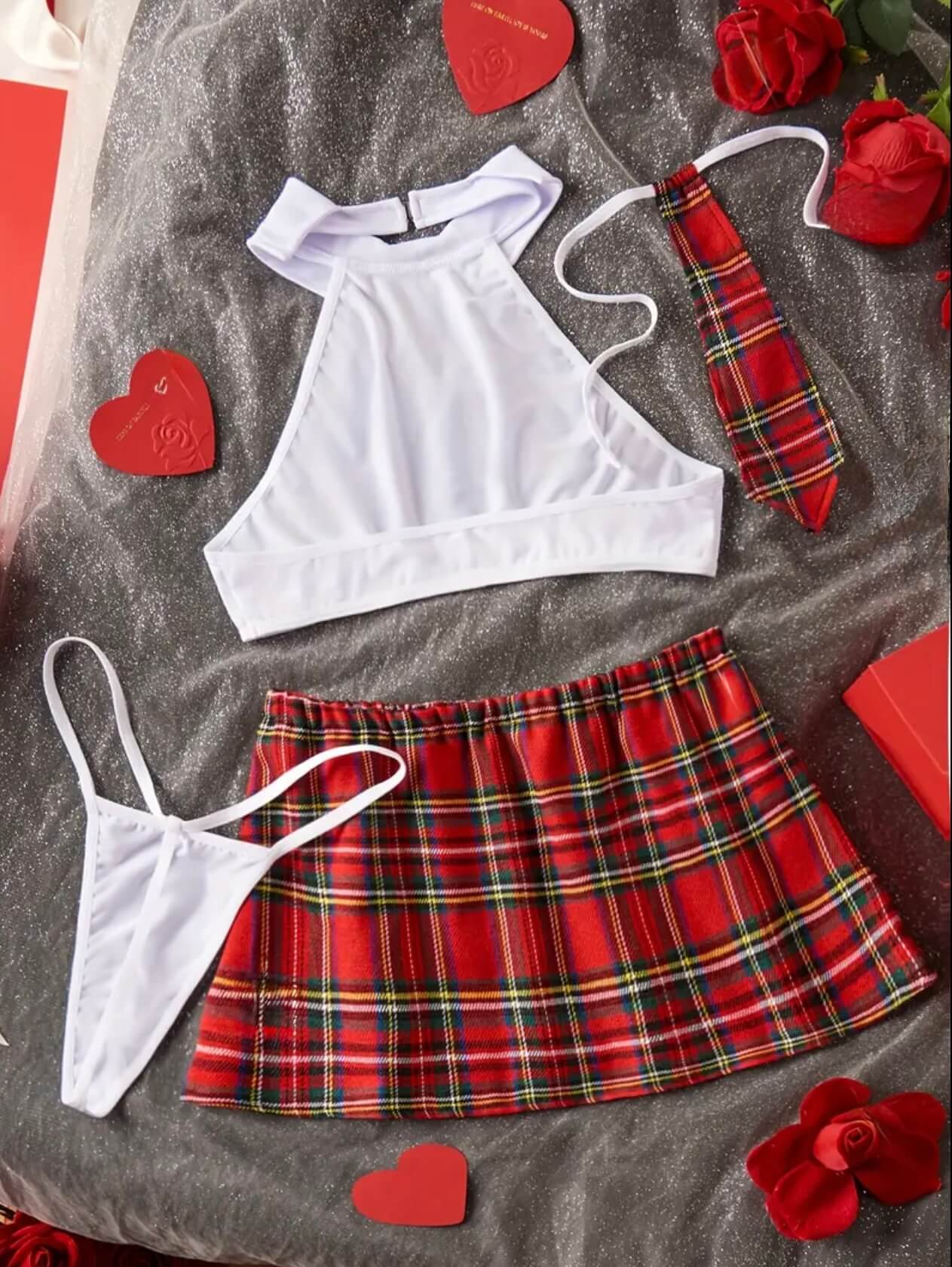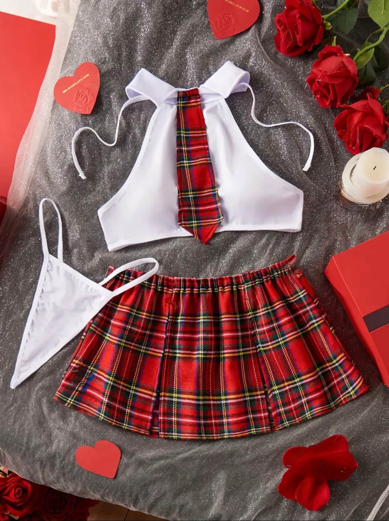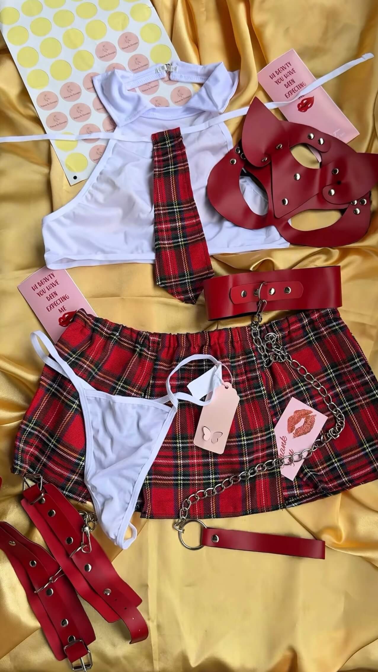 შენი playful მხარის აღმოჩენის დროა! ჩვენი წითელ-თეთრი მოსწავლის უნიფორმა — მოკლე ქვედაკაბით, თეთრი ტოპით , პატარა ყელის აქსესუარით და თეთრი ტანგით — შექმნილია იმისთვის, რომ შენი იუმორი და სექსუალურობა ერთიანად გამოჩნდეს. ![]()